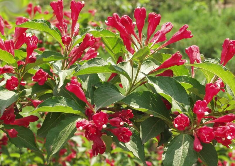 紅王子錦帶的株型十分美觀,枝條修長、花朵稠密且花色鮮艷,盛花期時整體株型似紅球般燦如錦帶,盛花期結束的零星紅花作為點綴搭配綠葉,也頗具有較美的觀賞價值。