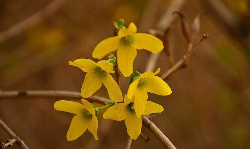 連翹是雙子葉植物綱連翹屬,落葉灌木的品種。這種植物通常是在早春時節就開花了,花開的時候香氣非常的淡雅,這種植物的花色是金黃色的,艷麗又帶有一點可愛,觀賞性極高,是早春時節的優良觀花灌木品種,生長高度可以達到三米。花期集中在34月份,結果期集中在79月份。