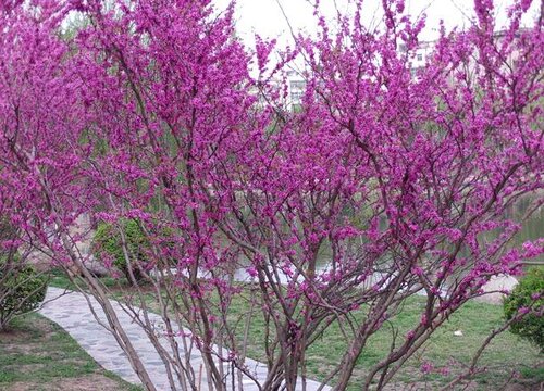 紫荊花先花后葉,主要種植在草坪邊緣和建筑旁邊。它的花是紫色的,花期在春天。不同地區(qū)的開花時(shí)間不同。應(yīng)與常綠樹種一起種植,以裝飾和提高景觀效果。
