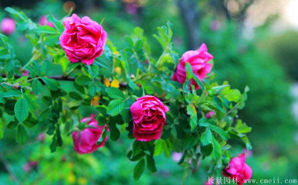 玫瑰,棵型總高0.4~2米高間,葉子開花的形態按照種類有差別有區別,有的較為細長,有的比較圓,玫瑰花蕾顏色是增加,如淺紅,粉紅色,深黃色,淺白色等,花開的時間很長,花量十分大,每年的是花開的時間時間從6月中旬到8月,果實9~10月熟透,有較高的出苗水平。大面積分布法國省市,祖國的江蘇沭陽,黑龍江,廊坊,江蘇,山西等全是玫瑰的集中產區。