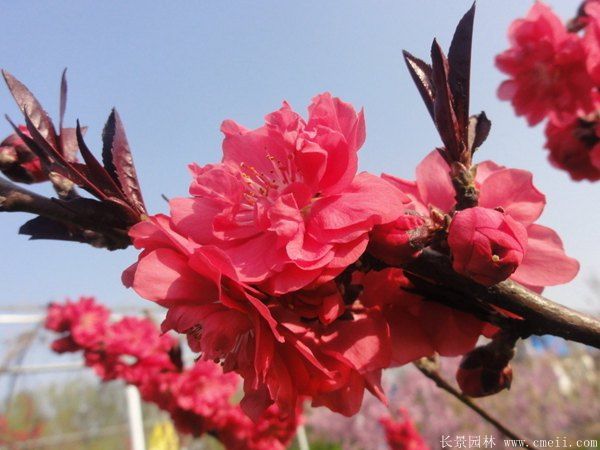碧桃,是落葉的中小喬木或是落葉的灌木,棵型總高3~9米不等,規格直徑小一點的有2cm3cm4cm5cm6cm7cm大一點的有直徑8cm10cm12cm15cm等,新芽春季3月生長,秋季下霜脫落。種類不相同,葉片,花朵,棵型還是有點細微的不同,碧桃繁衍有扦插,嫁接,同時種子繁殖。