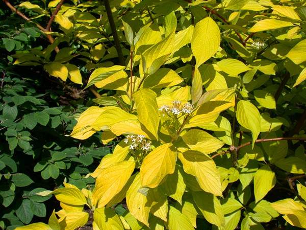 主要性狀: 葉對生,卵形或橢圓形,從春至夏葉片呈金黃色,入秋后葉片轉為鮮紅色,落葉后至春季新葉萌發時,枝干呈鮮艷的紅色。頂生傘房狀聚傘花序,寬3-5CM,花白色或黃色,花期5-6月。核果斜卵圓形,8-9月成熟。