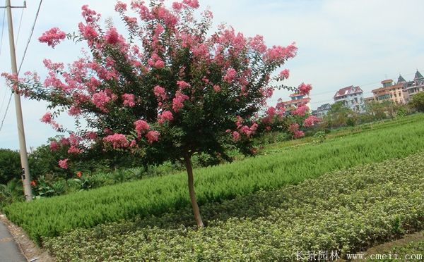 紫薇在園林中使用很普遍,因其開花時間為雨季,是缺花氣候,粉色花蕾格外亮麗,給酷熱的雨季帶去一些涼爽,是私家園林欣賞的好種類材料。紫薇可用于栽植花鏡,圖形,街道綠化,小區(qū)綠化,公園綠化等,見效快,緩苗期短暫,綠化效果好。另外它也也能夠與很多種園林苗木組合應用,創(chuàng)造各種景觀,比如與龍柏,美人梅,高山黃楊,八仙花,叢生紫荊,紫羊茅,菊花苗,大葉黃楊,金葉女貞,蔥蘭,黃槽竹,鋪地柏,鉛筆柏,馬尾松,四季凌霄,塔柏球,垂枝梅,刺梅花,月季樹等一塊栽植。